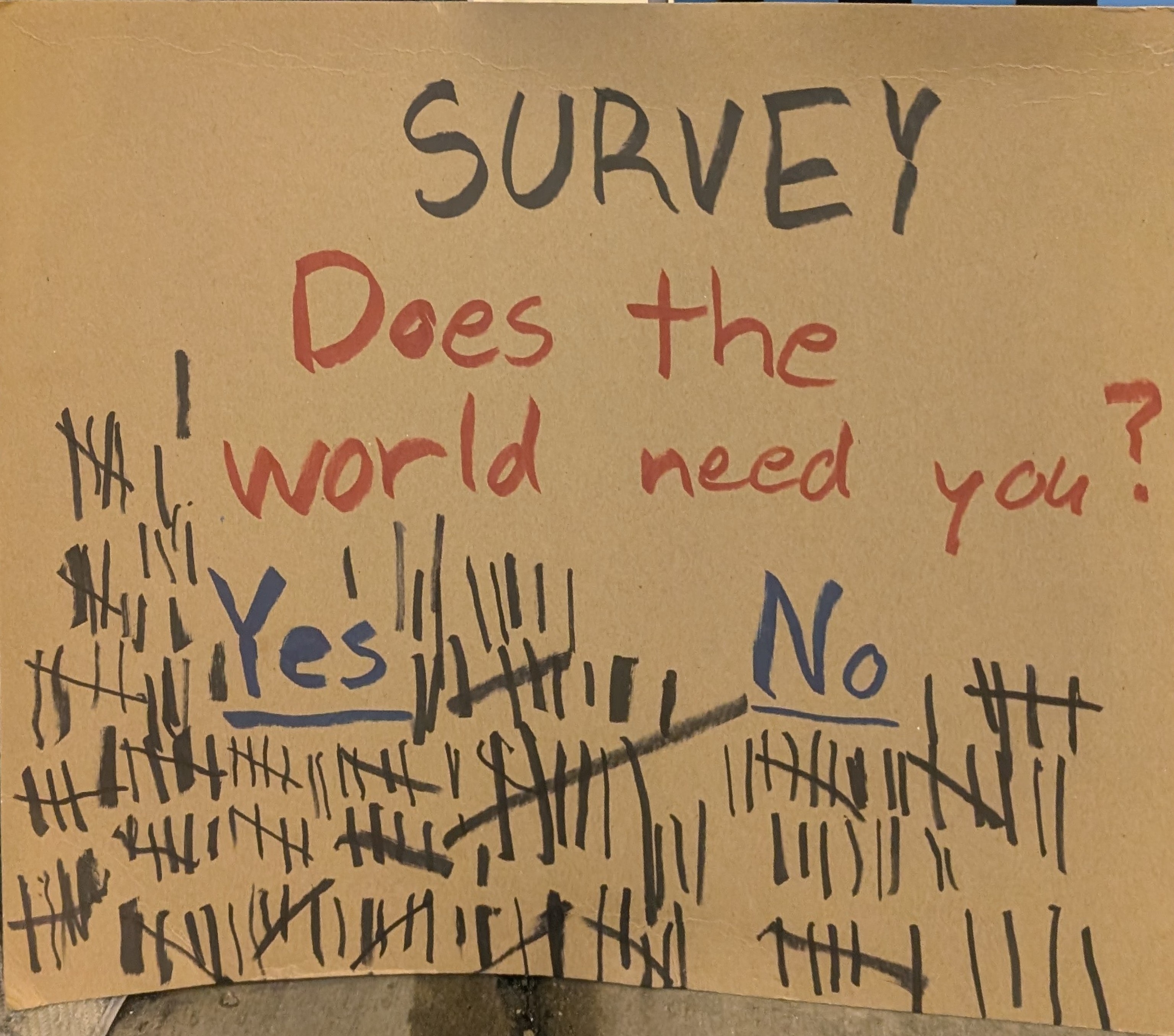 Some of them asked what my answer is, and I told them that I put down a Yes, but only because people like my signs.