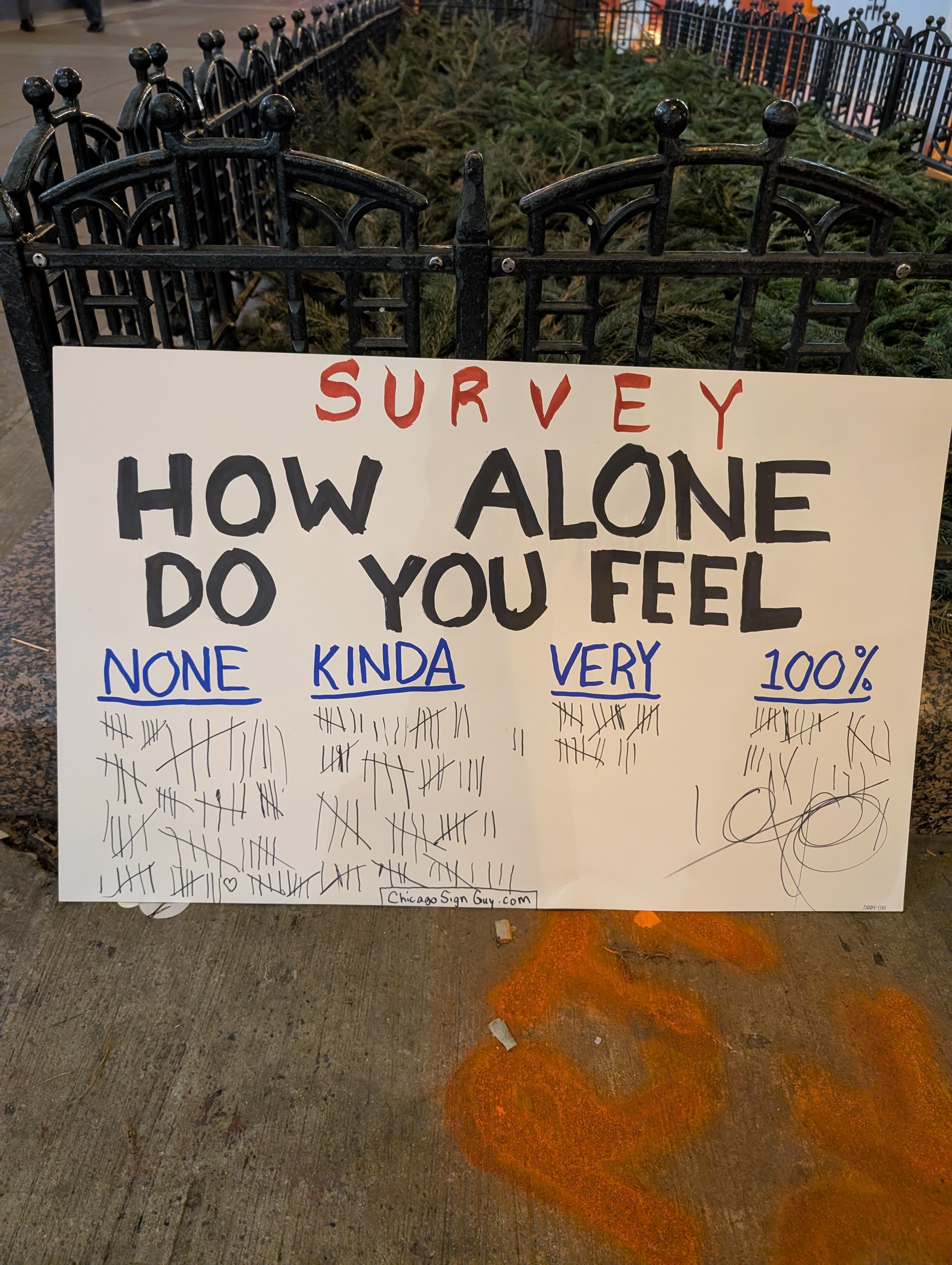 As usual, I didn't ask many people to do the survey. I would just stand there, and hold the marker out. A few times I softly said "survey?" when I saw people whose answer I was particularly curious about. Most of them just kept walking.